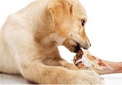 να αποτελείται από πρωτεΐνες κατά 40% , από ίνες κατά 30% και από άμυλο και υδατάνθρακες κατά 30%. Ο σκύλος ως σαρκοβόρο, το βασικό φαγητό του είναι το κρέας, αλλά επειδή μετά έγινε οικόσιτος και ζει πλέον μαζί με το αφεντικό του τώρα έχει γίνει πια παμφάγο.